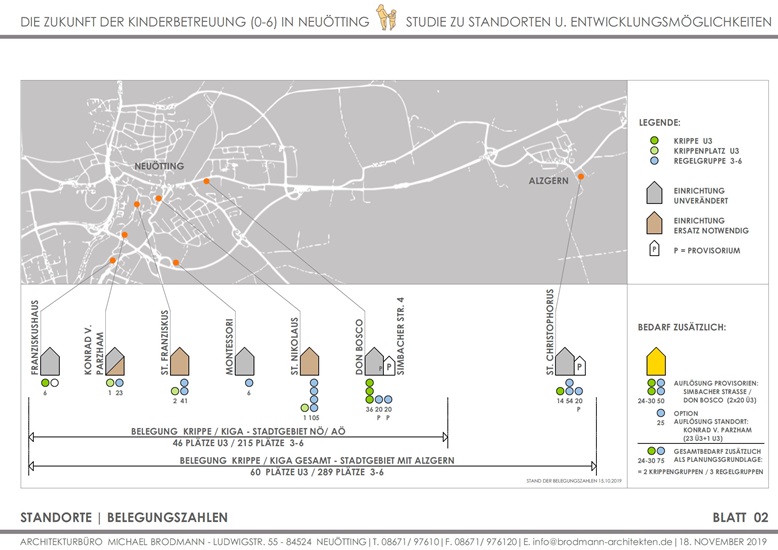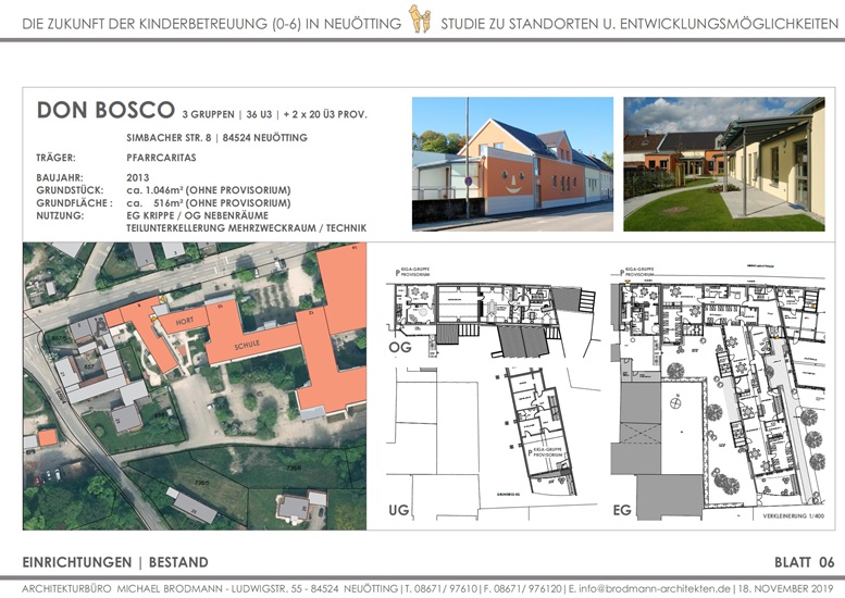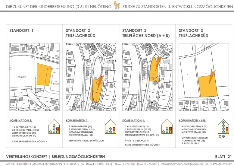 Zukunft der Kinderbetreuung 0-6 Jahre in Neuötting | Standorte und Entwicklungsmöglichkeiten | Studie und Ausarbeitung für 3 Grundstücke | 2019