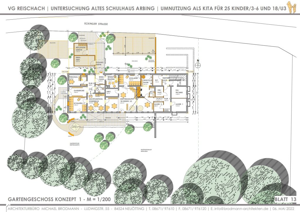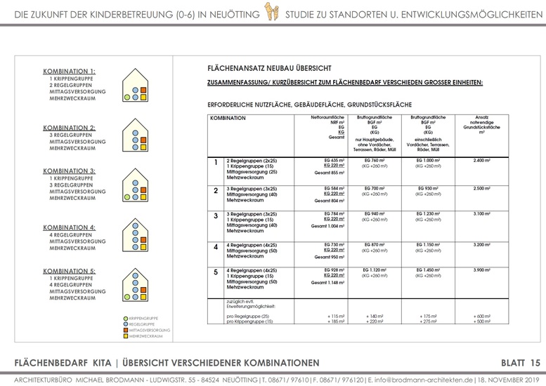 KiTa | Neuötting | 3-5 Regelgruppen mit Mittagsversorgung und MZW-Raum + 1 Gruppe U3 | Konzepte für Neubau | 2020