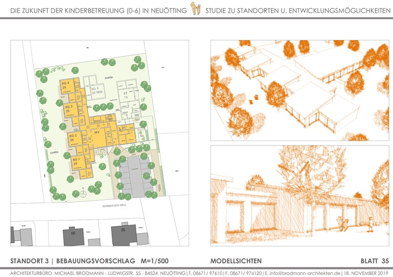 Zukunft der Kinderbetreuung 0-6 Jahre | Neuötting | Standorte und Entwicklungsmöglichkeiten | Studie und Ausarbeitung für 3 Grundstücke | 2019