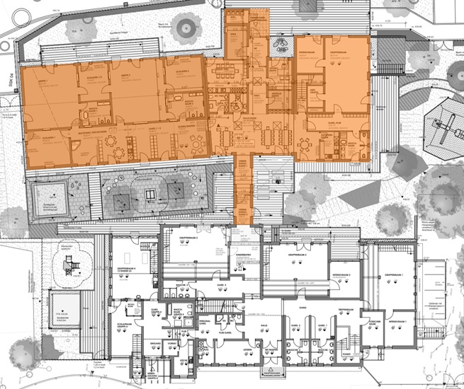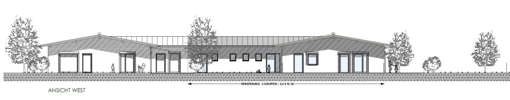 Erweiterung für 1 Regelgruppe und 2 Krippengruppen 2×15 Ki U3 | Mittagsversorgung | Insgesamt 4 Regelgruppen und 3 Krippengruppen | FS 2022